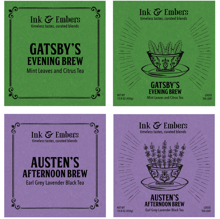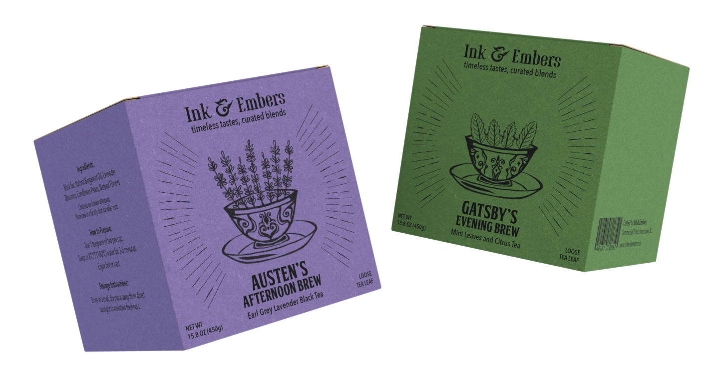 One of Ink & Embers’ brand extensions includes a premium tea collection under the tagline “timeless tastes, curated blends.”