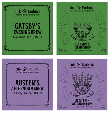 Each blend would be a reference to the literary world, offering a sensory journey for tea lovers and book enthusiasts alike, perfect for a cozy reading session with a classic in hand.