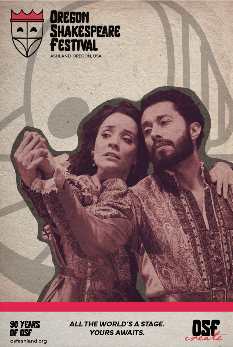 The redesigned logo for the Oregon Shakespeare Festival combines theatrical and architectural symbolism to honor both Shakespearean tradition and the festival’s Oregon roots. The theatrical mask represents drama and storytelling, a nod to the art of theater, while the clean, structured lines draw inspiration from the architecture of Oregon’s iconic Elizabethan-style theater.