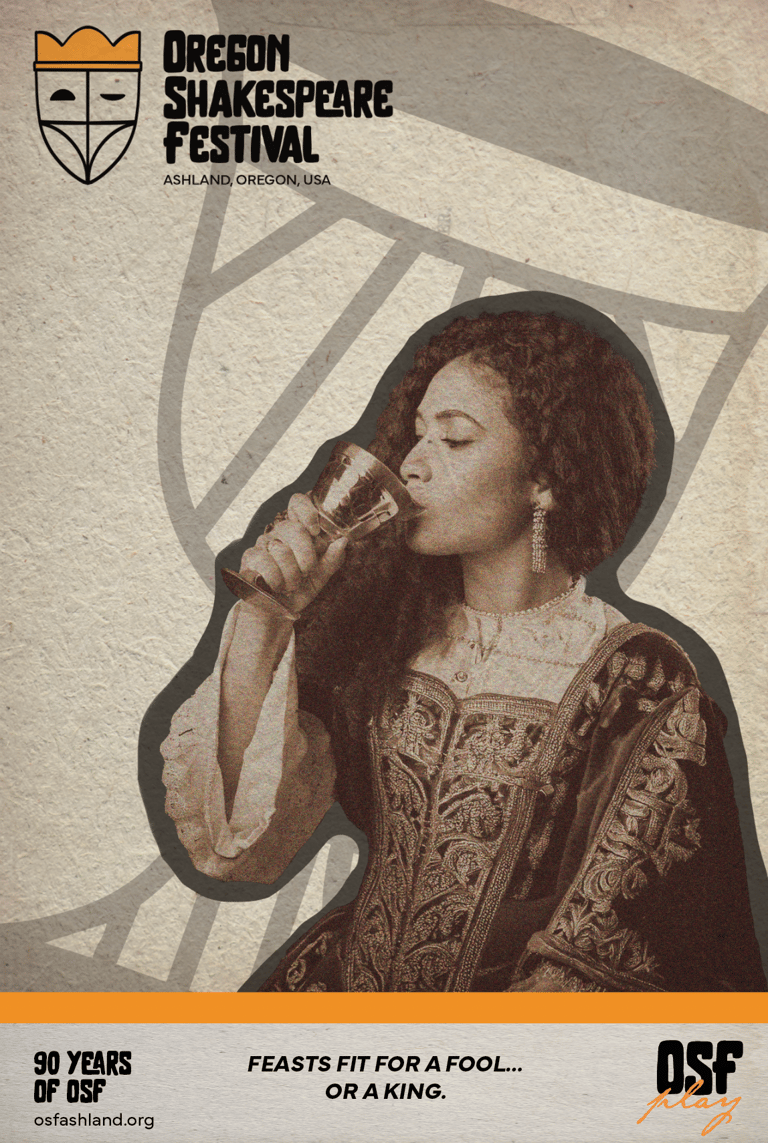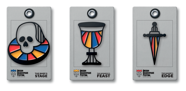 The set of icons captures the essence of the Oregon Shakespeare Festival’s core experiences with a playful Shakespearean twist.